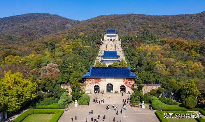 中山陵,位于南京市玄武区紫金山南麓钟山风景名胜区内,是中国近代伟大的民主革命先行者孙中山先生的陵寝及其附属纪念建筑群,陵寝面积8万余平方米,于1926年春动工,至1929年夏建成。中山陵前临平川,背拥青嶂,东毗灵谷寺,西邻明孝陵,整个建筑群依山势而建,由南往北沿中轴线逐渐升高,主要建筑有博爱坊、墓道、陵门、石阶、碑亭、祭堂和墓室等,排列在一条中轴线上,体现了中国传统建筑的风格,从空中往下看,像一座平卧在绿绒毯上的“自由钟”。中山陵建筑融汇中国古代与西方建筑之精华,庄严简朴,别创新格。